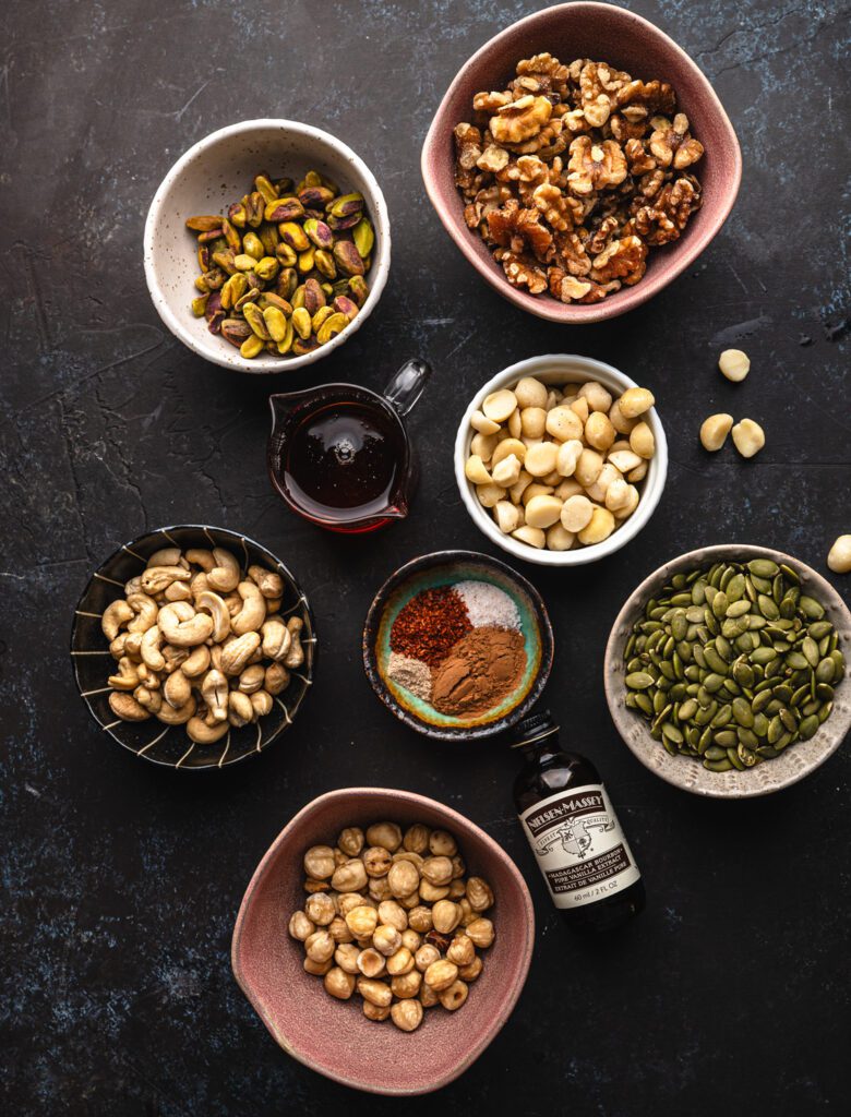 Each ingredient adds depth, warmth, and texture to this festive flavoured nuts recipe: