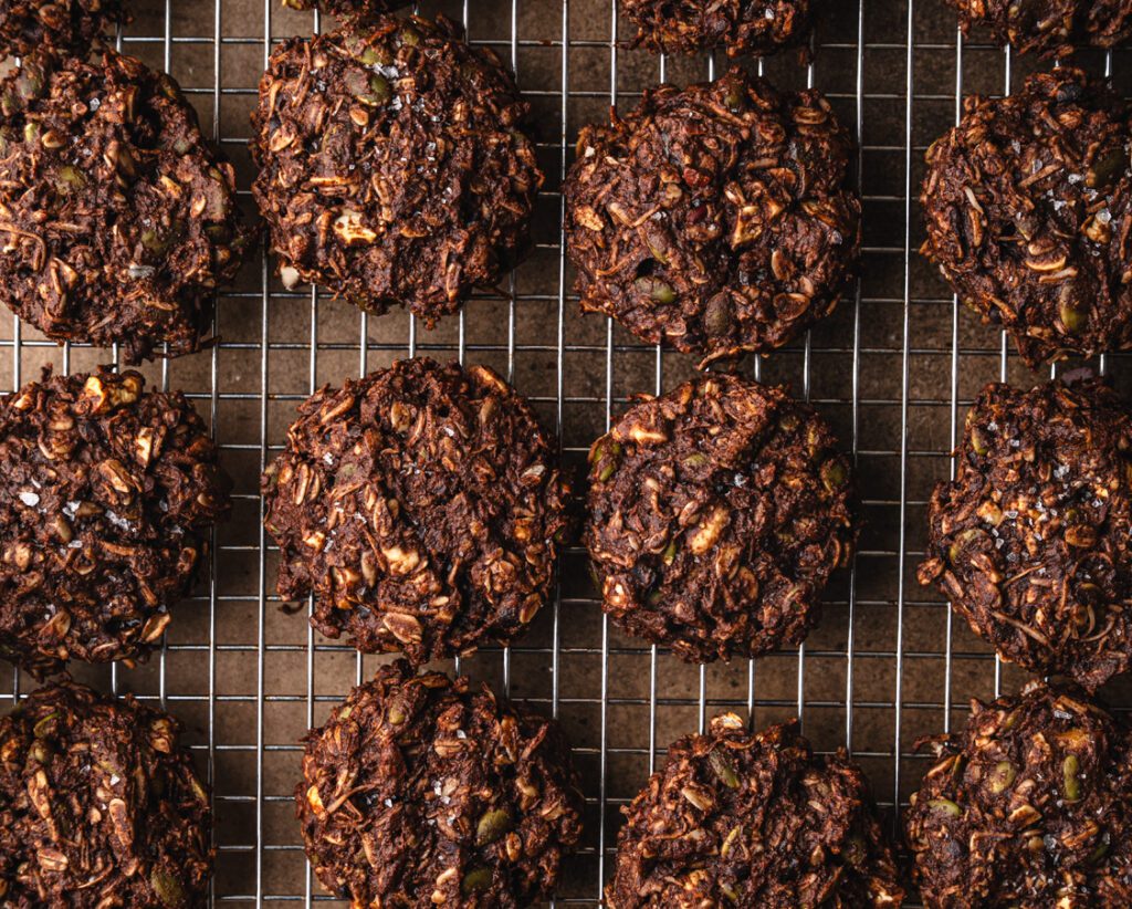 These are not your traditional chocolate chip cookies. While they deliver all the rich, chocolatey satisfaction you expect, they are built on a foundation of whole, nourishing ingredients. The sweetness comes primarily from ripe banana and dates, with just a touch of maple syrup, making these chocolate cookies viturally sugar free in comparison to conventional recipes. The oats, seeds, and nuts provide fibre and healthy fats, while peanut butter and egg contribute protein, helping to keep you full longer. These cookies are also naturally gluten free, so long as you are making them with certified gluten free oats.