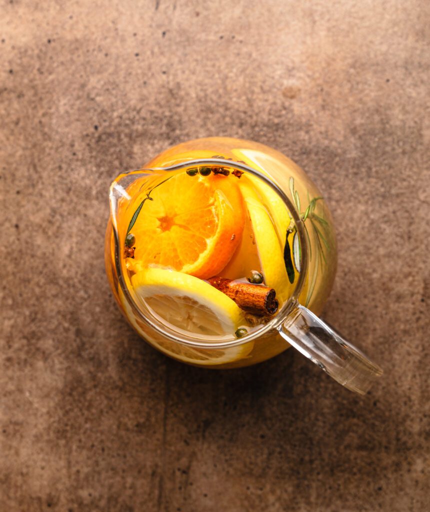 At its core, immunity tea is any tea made with ingredients known to support immune health, hydration, and nervous system balance. Unlike store-bought immunity teas, this homemade version is vibrant, fresh, and customizable. This tea in particular leans on citrus, specifically from clementine and lemon. When you take the first sip of this immune system boosting tea, you’ll be surprised at how naturally sweet it is. It doesn’t taste “medicinal,” and that’s kind of the luxury of it!