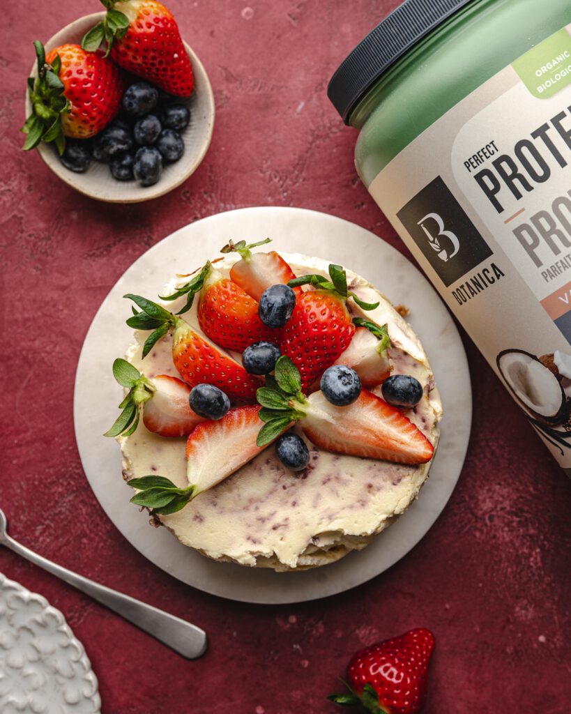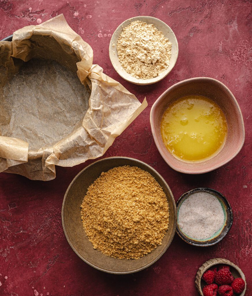 A GOOD protein powder doesn’t interfere with the recipe; it enhances it. Botanica is that for me, I’ve been baking with it for years, and there’s a reason for that – it works, and it tastes damn good. Adding the protein to the crust won’t compromise any of that silky texture of the filling. By mixing Botanica Vanilla Protein into the oat cookie crumbs, you get a boost of protein and a hit of vanilla flavour right in the base. I want to encourage you to try using your protein powders differently. Putting the protein in the crust just hits different.