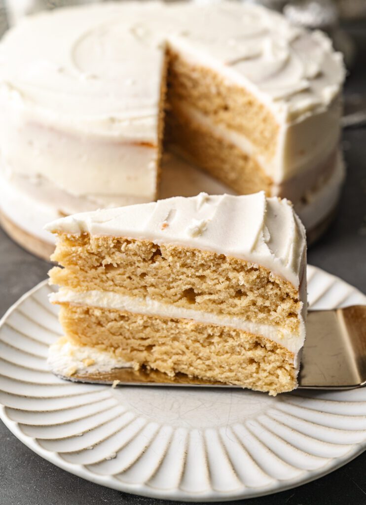 This cake pairs beautifully with the included easy vanilla icing recipe, but it’s also incredibly customizable. You can frost it lightly for a simple, elegant finish or add more frosting for a classic birthday look. Fresh berries, sprinkles, shaved chocolate, or edible flowers can all help make the birthday vibes come to life. Vanilla cake is a blank canvas, which is totally fun to decorate in the way that feels most like the person or event you are celebrating!