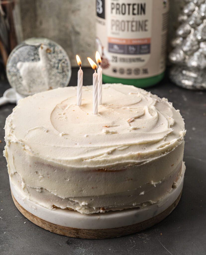 There is something timeless about a vanilla birthday cake. It doesn’t need to shout. It doesn’t need layers of gimmicks or overly sweet fillings. A good vanilla cake is soft, tender, fragrant, and quietly confident; the kind of cake that feels right every single time a candle is lit. This High Protein Vanilla Birthday Cake is my version of a celebration classic. It’s light and moist, gently sweetened, and made with nourishing ingredients that support balanced energy without taking away from the joy of a birthday moment. This is a cake you can feel good about baking, sharing, and enjoying, whether it’s for a big milestone, a quiet birthday dinner, or simply because cake feels like the right thing to do.