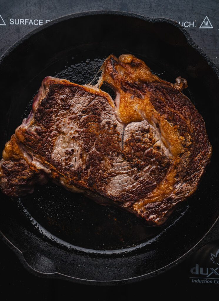 First of all, cast iron is ideal for many applications. Especially when you need high, consistent heat. Cast iron skillets retain heat better than any other pan, which is exactly what you need for a proper sear. High, steady heat allows the steak to form a golden-brown crust without sticking to the pan. Here is the cast iron pan that I use and love!