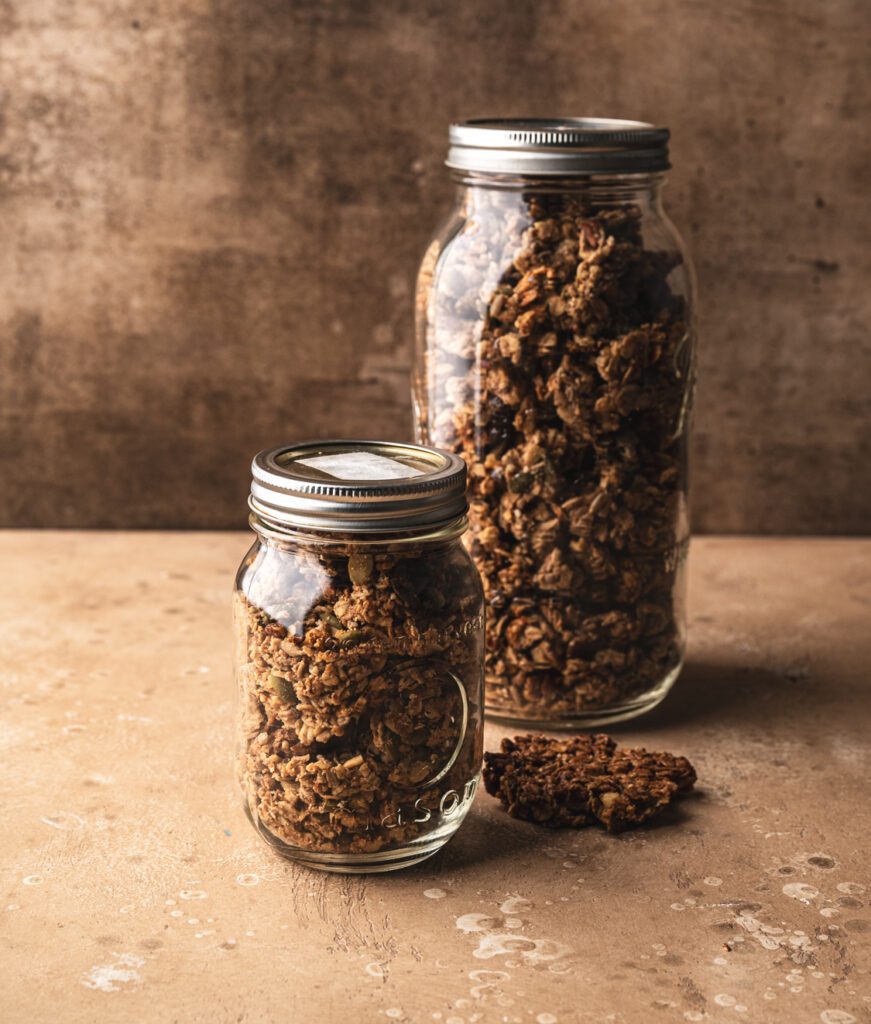 This is the most important step. Let the granola cool completely on the trays before touching it. As it cools, it sets into those perfect clumps. Once fully cooled, transfer to mason jars. It keeps beautifully for up to a month in your pantry.